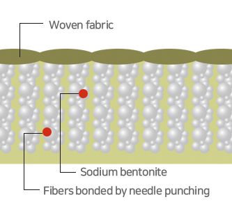 This product is designed by combining the impermeable properties of bentonite with the structural characteristics of geotextiles, enabling its application to civil engineering sites and facilities.