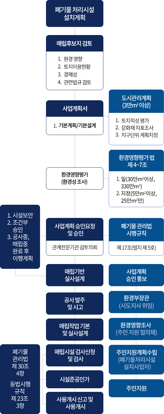 폐기물관리법 제54조에 의거하여 상부토지이용계획을 수립하여야 하며 상부토지이용계획 수립시 도시공원 및 녹지 등에 관한 법률 등 관련법을 참조하여야 한다.