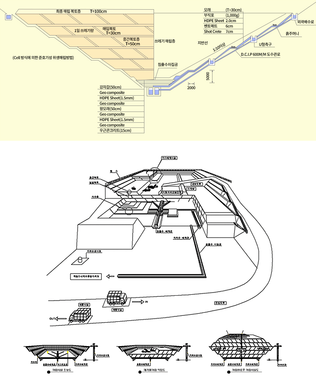 이 구조는 혐기성(무산소) 환경을 유지해 폐기물이 안전하게 분해되도록 돕고, 침출수 및 가스 발생을 효과적으로 관리할 수 있습니다.