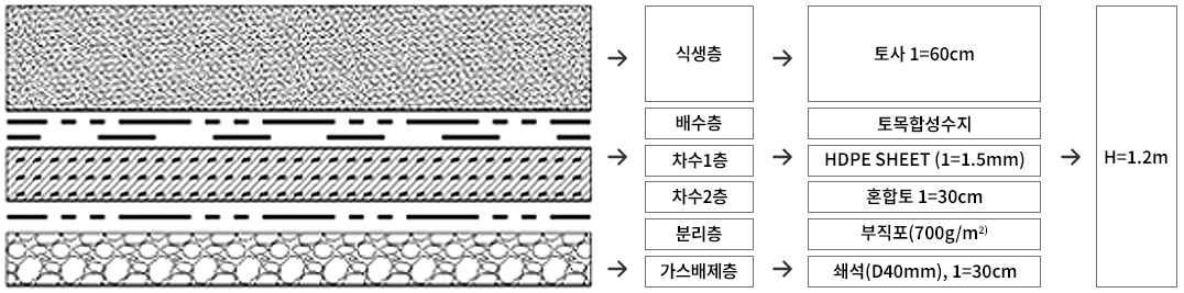 복토두께는 30cm 이상으로 다짐하고 물이 고이거나 강우에 침식되지 않도록 주기적인 유지관리가 필요하다.