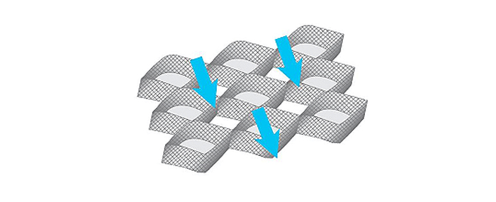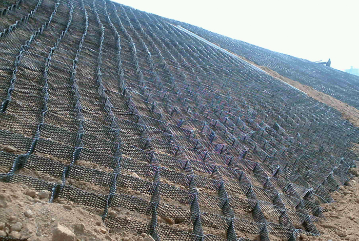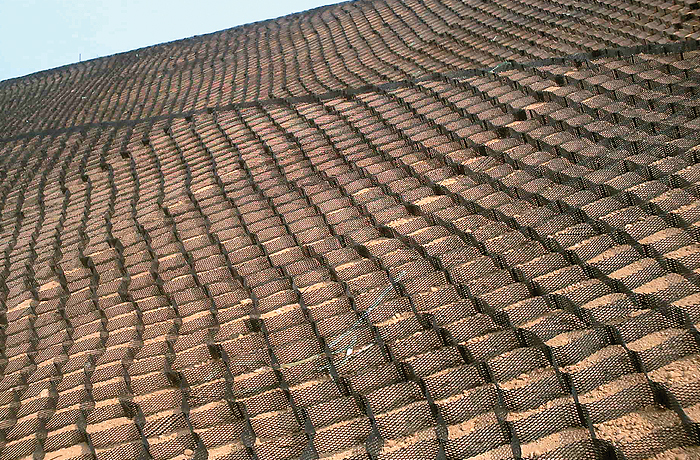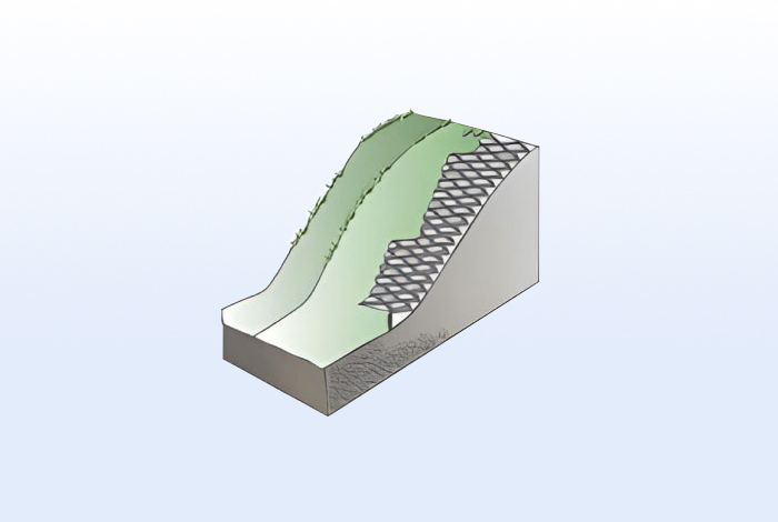 흙과 상호 마찰력이 우수하여 보다 안정적인 사면의 보강을 확보하여 안정적인 사면을 형성합니다. 특히 토립자를 구속하여 집중강우 등에 의한 침식에 탁월한 저항력을 가집니다.