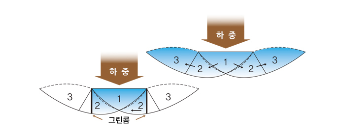 채움재로 충전된 그린콤은 마치 슬래브 형태의 작용을 하여
