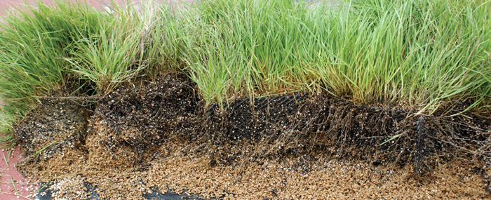 식생개체의 뿌리가 관통, 활착되어 식물개체와 일체성을 부여하여
