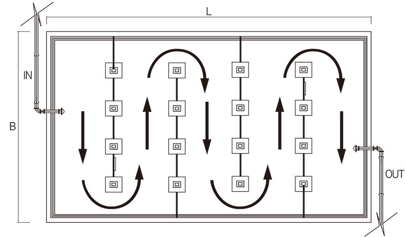 SHEET를 바탕면에 전면 접착시키지 않고, 수조 상단에 앙카로 고정시킨 후 SHEET 연결부는