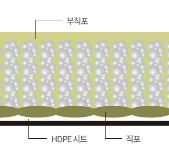 이때의 투수계수는 ×10-9cm/sec의 불투수층을 형성하므로 우수한 차수효과를 기대할 수 있습니다.