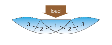 주변셀에서도 이에 대응하는 수평 응력으로 셀벽을 지지하고 있기 때문에 셀 벽은 중립의 위치에 있게 되어 자립성을 유지합니다.