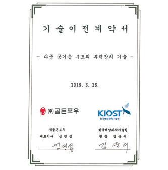 과량의 공기 강제 주입으로 공기 밀도를 높여 일정 수압을 견딜 수 있습니다.