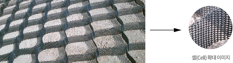 다공성 망상구조의 스트립을 사용하여 셀 벽 간 유수의 이동이 자유로워 골재등의 채움 등으로 배수층 적용이 용이합니다.
